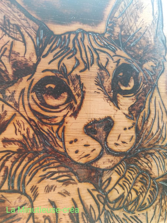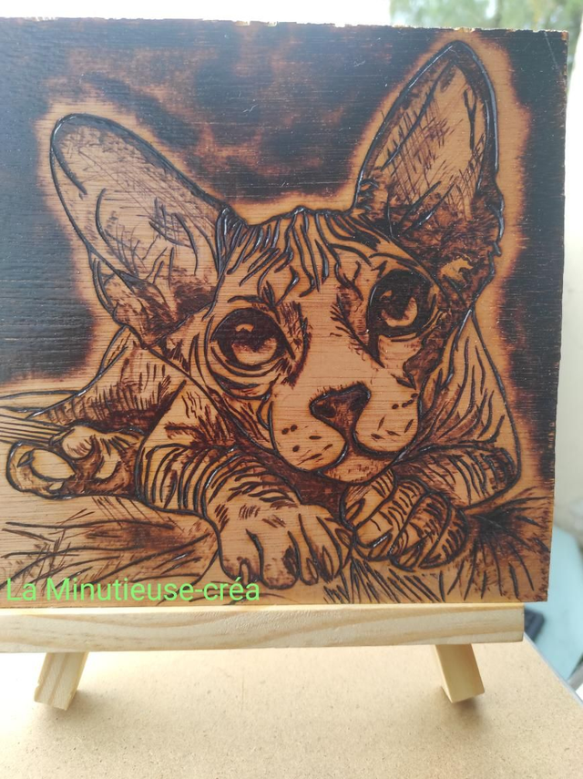 Pyrogravure chat sphynx pièce unique.