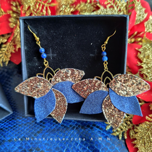 Une paire de boucle d'oreille en similicuir création unique créé par mes soins.