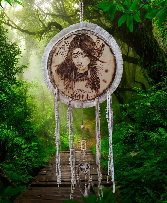 Pyrogravure de 30 cm de diamètre.